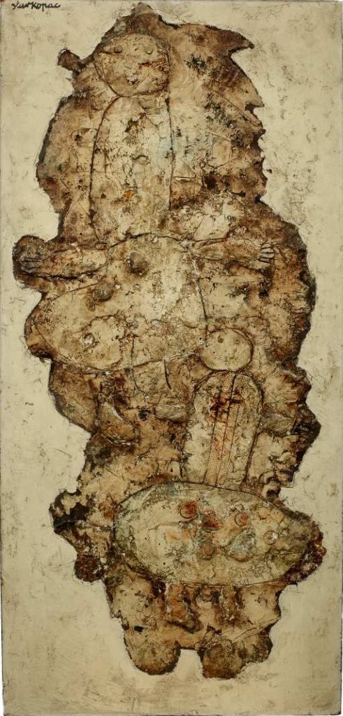This is also how, during the same decade, Paris didn’t take at all seriously Asger Jorn, leader of the Nordic movement COBRA, who became a new star of the Ecole de Paris. Both of them and Slavko Kopac, who would join them in this new constellation of strange artists, arrived far too early in an artistic milieu, still stuck in traditionalism. The other traditionalism of a good artist abstract painting only overlapped the traditionalism of a good artist figurative painting. As for Kopac, he had nothing at all to do with that. If we had to assign a genre for him, it would be among those artists who, with Dubuffet and Fautrier at the head, make what I used to call, for want of something better: “another figuration”. This is to say that their imaginative and, sometimes, symbolical work is not always sufficiently “legible” for them to be classified among the figurative artists who are strict in their obedience, but which are neither sufficiently abstract (which they are not at all) to be put in the same folder together with non-figurative artists. It, therefore, concerns a different figuration that they propose to us, a figuration of appearances. The figuration of appearances is questionable. Academic rules govern the way in which we see things. This is how most of our fellow citizens believe they look like Hermes of Praxiteles while they actually look like Jean Dubuffet’s characters. So, again, we have the same problem. Visionaries are in fact, true realists.
